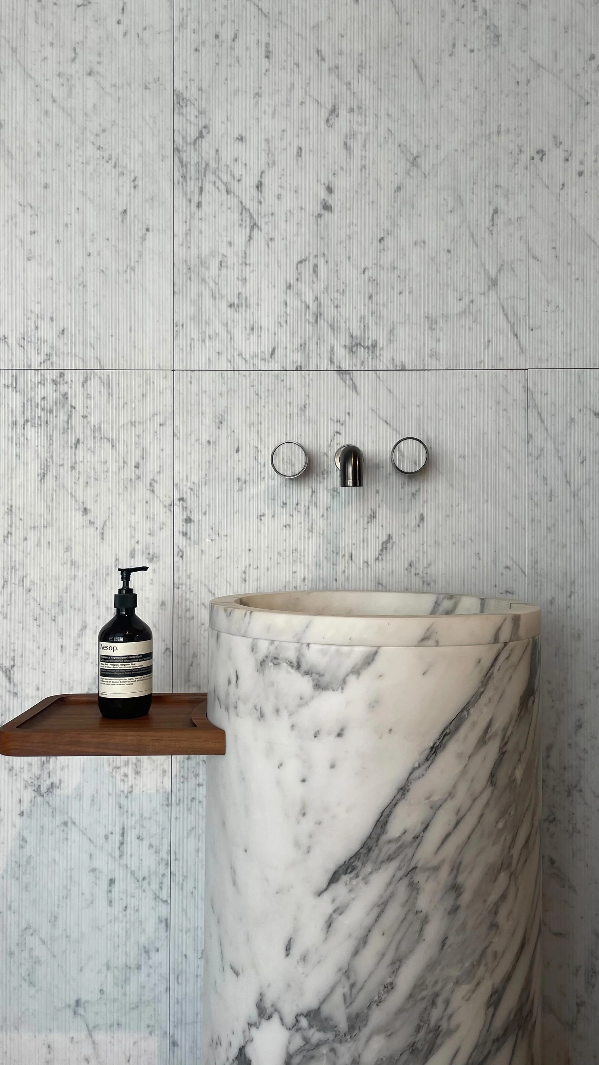 A minimal yet characterful kitchen renovation that balances functionality with refined details. Light grey cabinetry and honed marble countertops create a timeless foundation, while black accents — from the slim handles to bespoke switches — add contrast and definition. Industrial-inspired elements like the stainless steel faucet sit comfortably alongside curated styling, resulting in a space that feels both practical and elevated. The design embraces Scandinavian simplicity with a touch of urban edge, proving that restraint can be just as powerful as decoration.
